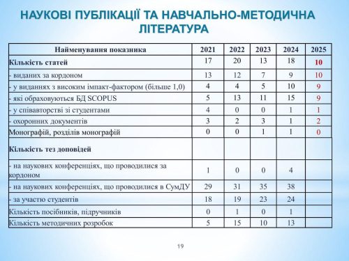 У 2021-2025 роках кафедра забезпечувала стабільні обсяги фінансування наукової діяльності загальним обсягом 18541802 грн. Саме в цьому році кафедра стала одним із переможців в університетському конкурсі «Кращий підрозділ за результатами наукової діяльності» (3 місце).