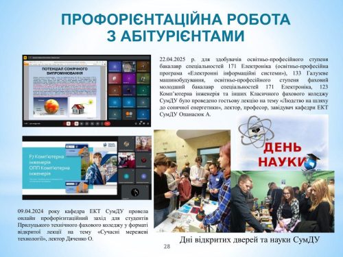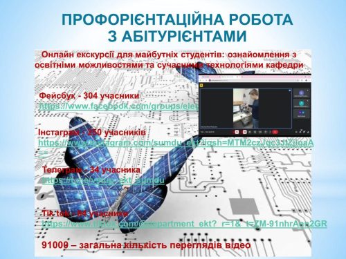 Профорієнтаційна робота. Кафедра ініціювала та реалізувала низку самостійних заходів, спрямованих на популяризацію освітніх програм, що проваджуються на кафедрі: